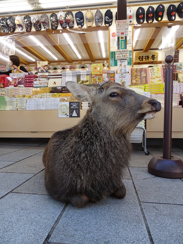 Nara ist unter Touristen bekannt als die Stadt, in der die Hirsche sich vor den Besuchern verbeugen, um mit Keksen gefüttert zu werden. Das tun sie tatsächlich und die Touristen sowie Pilger, die zu den Tempeln und Schreinen kommen, kaufen mit Begeisterung diese Kekse, mit denen man den Hirschen tatsächlich eine Freude machen kann. Zumindest am Anfang des Tages, wenn die Tiere noch Hunger haben. Gegen Nachmittag liegen sie dann oft lieber faul in der Gegend herum und verbeugen sich auch nicht mehr. Dann kann man ihnen mit etwas Glück noch einen Keks aufzwingen.