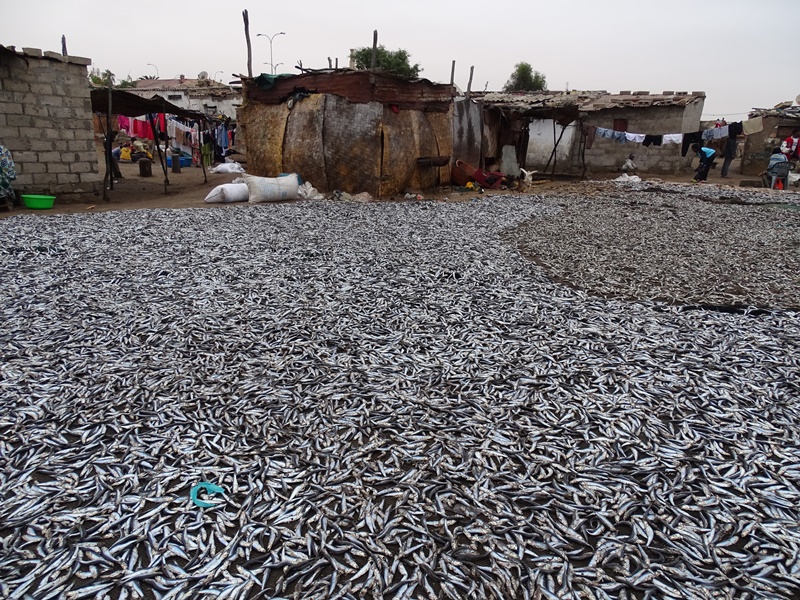 Und nicht zuletzt die Stadt Tombwa, wo tonnenweise Fisch gefangen wird. Es riecht in der ganzen Stadt nach Fisch. Jeden Tag werden Tonnen von Fisch an Land gebracht und weiterverkauft, so lange, bis in Tombwa kein einziger Fisch mehr übrig ist. Der Export boomt und in Tombwa findet man so gut wie keinen Fisch. Nicht mal in den Restaurants. Verrückt. Die Häuser in Tombwa verfallen und zwar, weil sie wohl noch immer irgendwelchen Portugiesen gehören, die seit Jahrzehnten verschwunden sind. Aber es macht sich natürlich keiner der Bewohner die Mühe, die Häuser zu reparieren, wenn sie jemand anderem gehören. Die Besitzer könnten ja zurückkommen und ihr Eigentum einfordern, frisch renoviert. Also wohnen die Menschen lieber unter eingestürzten Dächern.