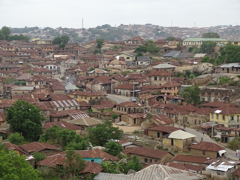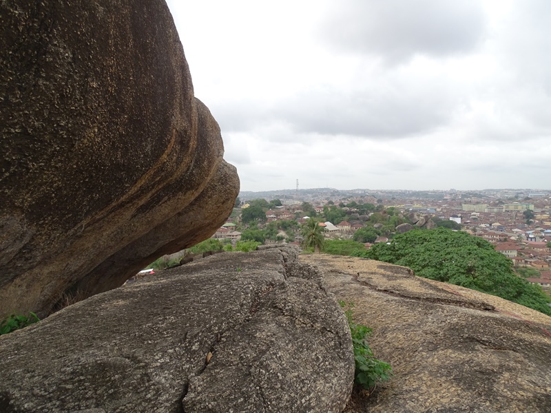 Niemand fand sie, bis der Krieg zu Ende war. Sie blieben in Abeokuta. Als man sie fragte, wie sie überlebt hatten, antworteten sie „Abeo kuta“, also „unter dem Stein“. Der Stein heißt Olumo Rock und ist eine der Attraktionen der Stadt. Man muss ein wenig klettern oder die moderne Treppe nehmen. Aber der Aufstieg lohnt sich, denn die Aussicht auf die ganze Stadt ist großartig.