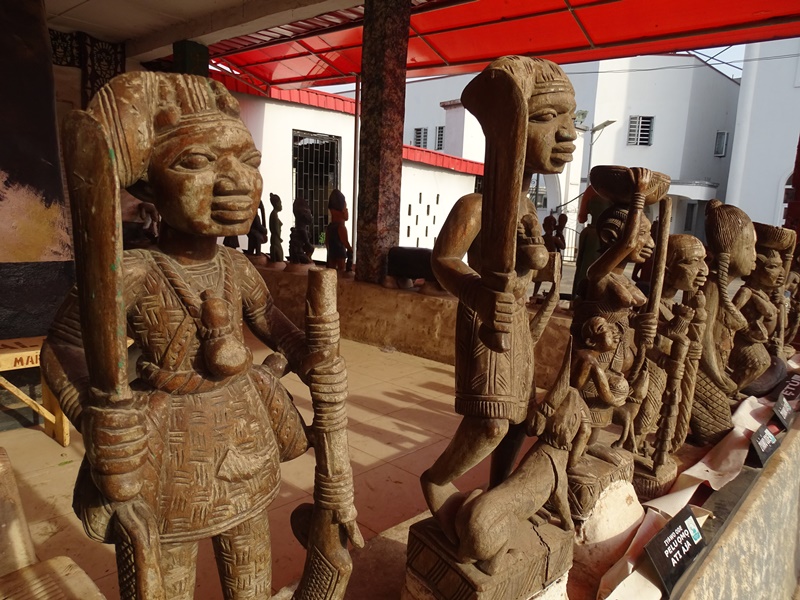 Spannend ist ein Besuch auf dem Markt von Abeokuta. Natürlich gibt es in einer Millionenstadt viele Märkte und man muss auswählen. Ich besuche den Kuta Markt mitten im alten Stadtzentrum. Er ist riesig, bunt und laut. Besonders interessant ist die Abteilung für Voodoo-Zubehör, wo es alles gibt, was man für eine wie auch immer geartete Voodoo-Zeremonie benötigt. Getrocknete Vögel, Hundeschädel, Chamäleons, Mäuse, Kröten und Fledermäuse werden ebenso angeboten wie Kräuter, Baumrinden und fertige Amulette und Opfergaben. Auch diese besonderen Ketten, die in Kuba, Brasilien und New Orleans bis heute eine wichtige Rolle spielen, kann man auf diesem Markt kaufen.