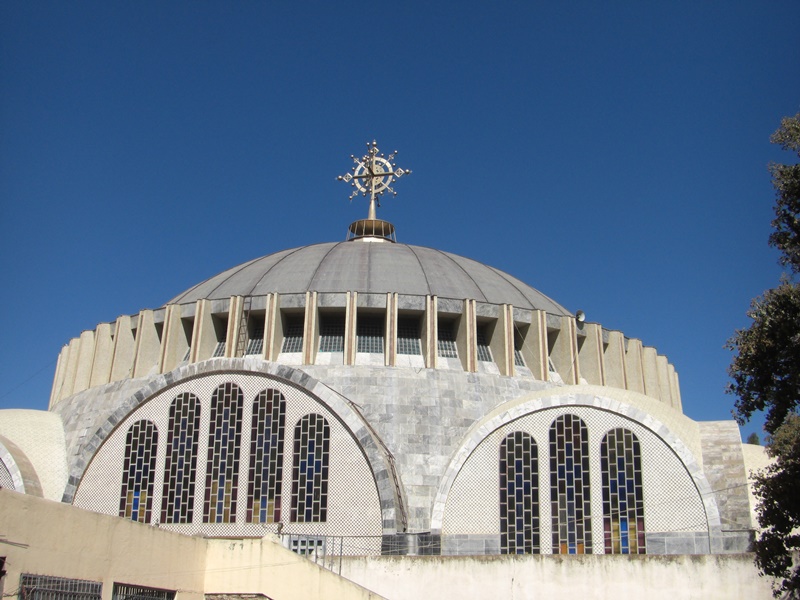 Die St Mary of Zion Kirche ist hingegen alles andere als antik. Es handelt sich um einen recht modernen Kuppelbau, den Haile Selassie in Auftrag gegeben hat und zwar in den 1950er Jahren. Sie ersetzt eine ältere Kirche, die vollständig abgebrannt war. Immerhin gibt es seit dem Neubau die Neuerung, dass in dieser Kirche auch Frauen Zutritt haben. Traditionell hat auch diese moderne Kirche viele Wandmalereien, denn traditionell können noch immer viele Äthiopier nicht lesen und brauchen die Bilder, um die ganzen Geschichten aus der Bibel zu verstehen.