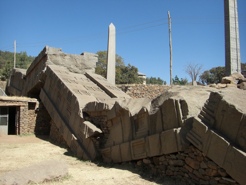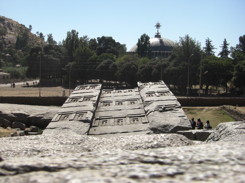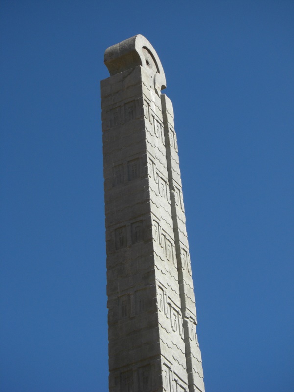 Danach schaue ich mir die Stelen von Aksum an, die hier einfach so herumliegen. Das heißt, einige stehen sogar noch. Eine der größeren haben die Archäologen sogar wieder aufrecht hinstellen können. Die eindruckvollste liegt jedoch flach. Sie ist mehrfach zerbrochen. Es wird vermutet, dass sie schon beim Versuch, sie aufzustellen, zu Bruch ging, was vermutlich daran lag, dass es ein ganz schön ehrgeiziges Unterfangen war, eine Stele von 500 Tonnen Gewicht aufstellen zu wollen. Ich bin begeistert. 2000 Jahre alte gigantische Steinmonumente lassen mein Herz höher schlagen.