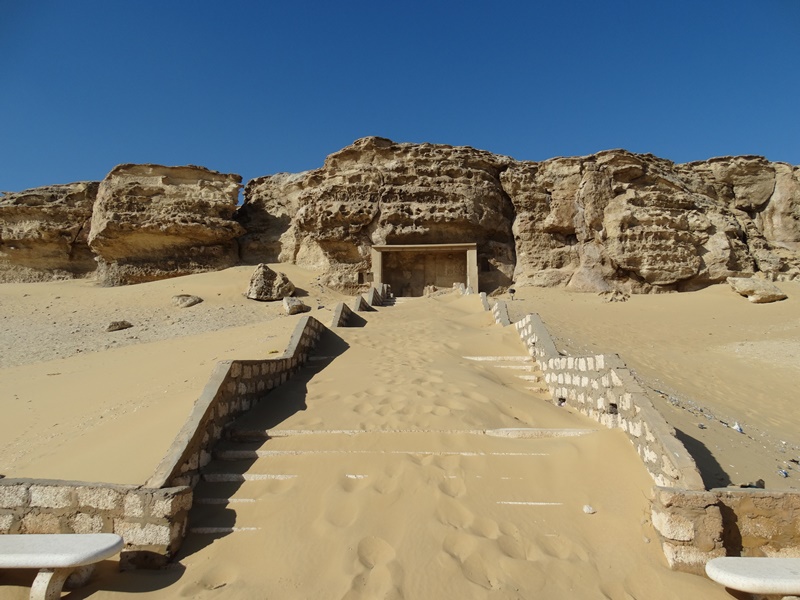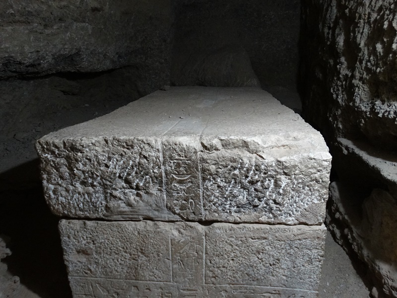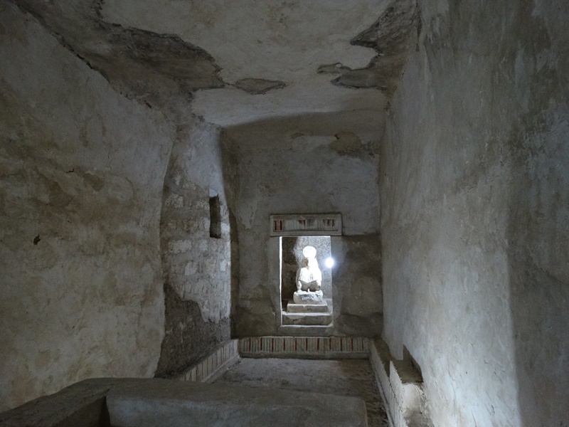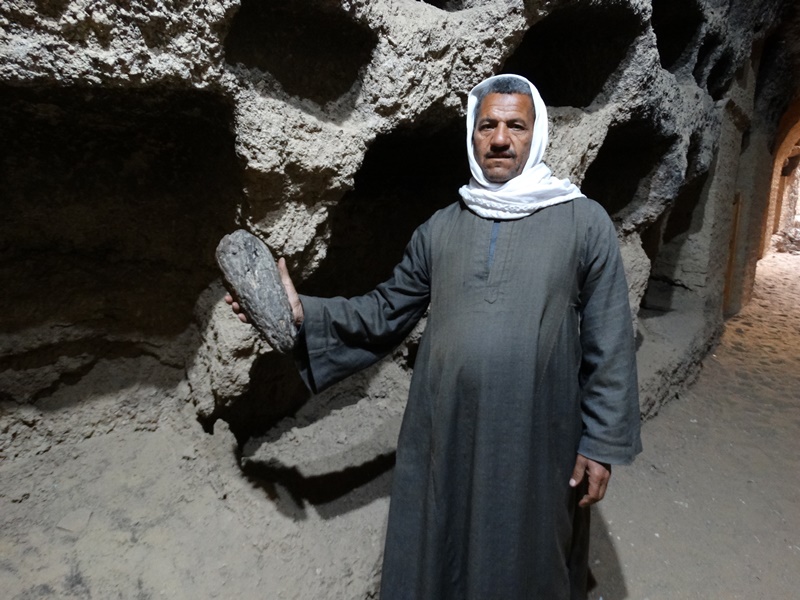 Was aber bis heute erhalten ist, sind eine Vielzahl von Gräbern. Ich durfte mit drei davon anschauen. Im Grab Nummer drei ist Ahmes, einer der Schreiber des Echnaton, beerdigt gewesen. Auf den Reliefs sind zahlreiche Träger zu erkennen, die Opfergaben für die Toten bringen. Viele Figuren sind zerstört worden, hauptsächlich die Gesichter, weil Echnaton überall abgebildet wurde. Schließlich war er der Vermittler zwischen der irdischen Welt und dem neuen Gott Aton und als solcher wollte man ihn aus der Geschichte ausradieren. Eine Statue von Ahmes ist noch erhalten und man kann den tiefen Schacht sehen, wo einst unten der Sarg mit der Mumie gelegen hat.