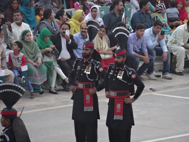 Etwas wirklich Verrücktes habe ich an der Grenze zwischen Pakistan und Indien erlebt: die Waga Border Ceremony ist ein wahres Event der bizarren Sorte. Jeden Abend versammeln sich wohl an die 10.000 Menschen zu beiden Seiten der Grenze. Hierzu sind riesige Tribünen aufgebaut worden. Es wird ohrenbetäubende Musik gespielt, gebrüllt, gesungen und getanzt. Ein paar Männer in Galauniformen führen ein paar kriegerische Gesten auf, marschieren ein wenig herum, öffnen die beiden Tore und holen dann unter lauten Geschrei die Fahnen ein. Das ganze dauert zwischen einer und zwei Stunden und wird bejubelt wie ein Weltmeisterschaftsspielt einer beliebten Sportart. Unbestreitbar gewinnen die Inder den Wettbewerb im Brüllen, Johlen und lauten singen. Auf pakistanischer Seite wird zwar auch gejohlt und geschrien, aber sie stehen den Indern in Lautstärke und Enthusiasmus für … ja, wofür eigentlich? – um ein paar Klassen nach. Wirklich verstanden habe ich das Ereignis nicht. Ich konnte nur offenen Mundes staunen darüber, dass tausende von Menschen sich an einer für Normalsterbliche unüberwindbaren Grenze versammeln und versuchen, sich gegenseitig zu übertönen. Faszinierend.