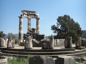 Ein Ausflug zum berühmten Orakel von Delphi soll mich in vergangene Zeiten entführen. Ich erfahre einiges über Apollon, den Sonnengott, der so strahlend wunderschön war, dass alle Frauen Angst vor ihm hatten. Daphne war sogar so geblendet von seiner Schönheit, dass sie sich vor lauter Schrecken in einen Baum verwandelte. Daher war er neidisch auf Dyonisos, den Gott des Weins, der Freuden und Laster, der nur so mittelmäßig wunderschön war, und der alle Frauen abbekam. Die Göttergeschichten der alten Griechen sind besser, blutrünstiger und anrüchiger als die Bibel, Herr der Ringe und Kill Bill zusammen.