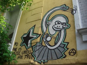 Am 1. Mai, dem Tag der Arbeit, liegt dann tatsächlich ganz Athen lahm. Die Metro wird bestreikt, die Museen und Sehenswürdigkeiten haben geschlossen, die Gitter und von Grafitti bedeckten Rolläden der Geschäfte sind herunter gelassen. Mir bleibt also fast nichts anderes übrig, als mir die eindrucksvolle Demonstration der Gewerkschaften, der Anarchisten und der Kravwallmacher anzusehen. Zu Tausenden gehen die Griechen auf die Straße und machen ihrem Unmut Luft. Ebenso eindrucksvoll wie die Parolen schreibenden Menschenmassen sind die Hundertschaften an bis unter die Zähne bewaffneten und mit einer ansehnlichen Körperpanzerung versehenen Polizisten, die die Demonstranten in gebührendem Abstand begleiten. Das elegante Hotel “Grande Bretagne” am Syntagma Platz hat sich regelrecht verbarrikadiert, denn es liegt auf dem Weg der Demonstranten. Nach nichtmal einer Stunde geht inmitten der Demonstranten der erste Kiosk gewaltsam zu Bruch und dann in Flammen auf. Auch wenn das für die Polizei noch kein Grund war, die Demonstration zu unterbrechen, beschließe ich, mir in einem ruhigeren Teil der Stadt noch ein paar streunende Katzen und einen griechischen Salat zu suchen.