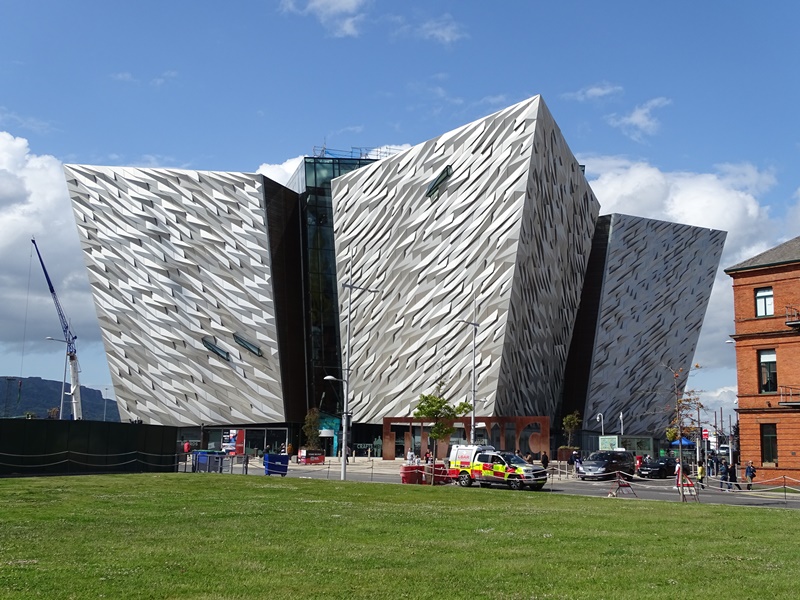 Belfast ist auch ein Ort, an dem die Geschichte der Titanic lebendig ist, mehr noch seit ein paar Jahren, denn das neue und moderne Museum ist fertig. Es befindet sich in einem grandiosen Gebäude, das schon von außen ein Knaller ist. Die Tickets für den Besuch der Ausstellung sind maßlos überteuert. Dennoch war einiges interessant. Nach dem Unglück, bei dem über 1500 Menschen ums Leben kamen, hat man zum Beispiel die Regel aufgestellt, dass ein Schiff mindestens so viele Sitze in Rettungsbooten haben muss, wie Passagiere an Bord. Klingt einleuchtend, nicht wahr?