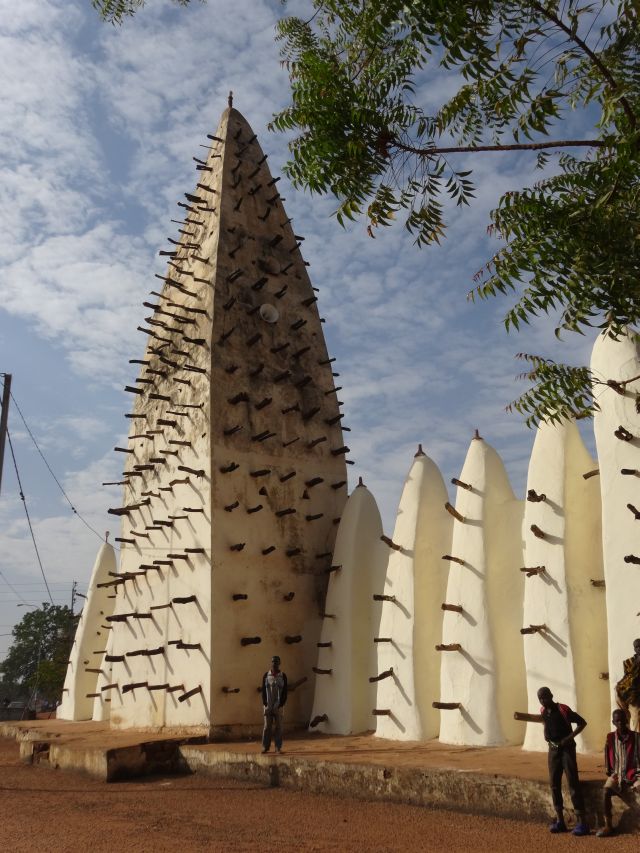 Bobo Dioulasso liegt weiter südlich. Sie ist einerseits die heimliche Zwiebelhauptstadt des Landes und andererseits eine Kulturstadt. Die Moschee hier ist fast so schön wie ihre Schwester in Timbuktou. Leider kann man ja zurzeit nicht nach Timbuktou fahren.