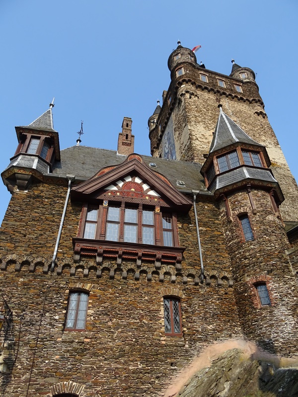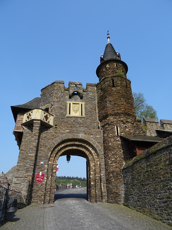 Von der Innenstadt führt ein Weg durch enge Gassen hinauf zur Reichsburg Cochem, die man von unten je nachdem, wo man sich befindet, überhaupt nicht sieht. Sie thront allerdings etwa 100 Meter über der Mosel und ist das Wahrzeichen der Stadt. Ich habe Glück und es gibt noch eine Führung, die ich mitmachen kann und die in wenigen Minuten startet.