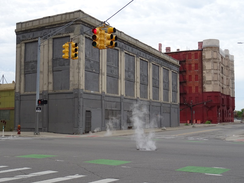 Der eigentliche Grund, warum ich Detroit sehen wollte, war die alte Packard Autofabrik, die seit Jahren leer steht. Das Fabrikgelände liegt mitten in der Stadt. Zwar nicht gerade neben dem Rathaus, aber doch so zentral, dass sich ringsherum Wohnhäuser und andere Fabriken befinden. Mir war eigentlich klar, dass ich nicht auf das Gelände gelangen würde, weil es sich noch immer im Besitz von Packard befindet und weil es vollkommen einsturzgefährdet ist. Trotzdem wollte ich dort unbedingt Fotos machen.