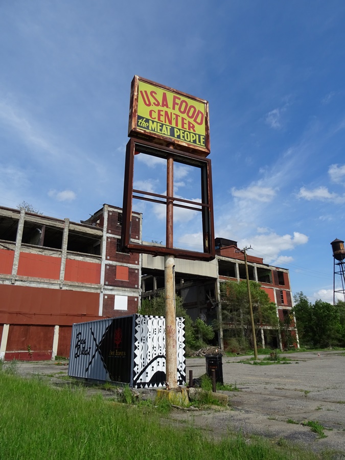 Das Gelände zu finden war nicht schwer. Die alten Fabrikhallen sind schließlich nicht zu übersehen. Eine Dame in einem weinroten Geländewagen patrouillierte um die Hallen herum. Ihr unerfüllender Job ist es, alle, die sich dem Gelände zu weit nähern, darauf hinzuweisen, dass sie nicht willkommen sind. Sie droht mit der Polizei und hält sich für unheimlich wichtig. Ich durfte also nur auf etwa drei Vierteln der Bürgersteige um die Fabrik herum spazieren, weil… ja warum genau habe ich nicht verstanden. Trotz der Einschränkungen kann man von der Packard Fabrik oder dem, was davon noch übrig ist, tolle Fotos machen. Ich fühlte mich ein wenig an Tschernobyl erinnert.