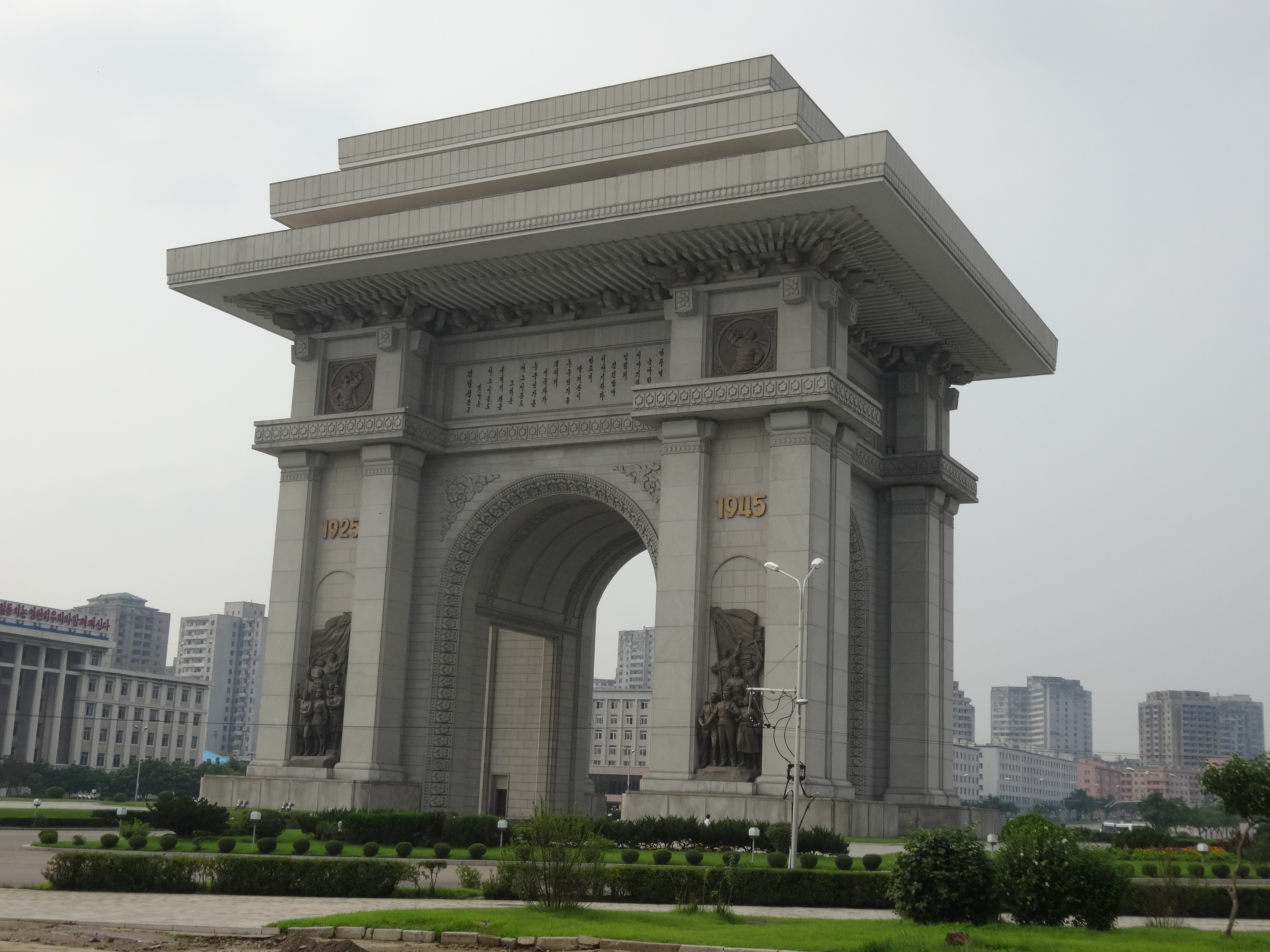 Höhepunkte des Reiseprogramms sind die vielen verrückt riesigen Monumente, die Kim Il Sung, Kim Jong Il, der Juche Ideologie und der Partei der Arbeit von Nordkorea huldigen. Während mir gebildete Damen in hübschen Kleidern erklären wie wunderschön und bedeutungsträchtig die jeweiligen Monumente sind, staune ich, wie man nur so viel Geld ausgeben kann, während die Bevölkerung hungert.
