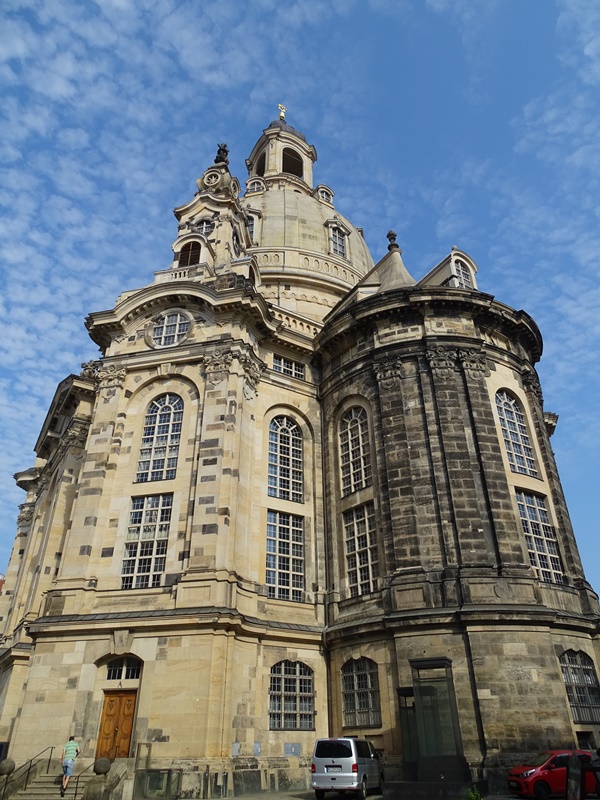 Die Frauenkirche ist zwar mindestens genauso bekannt, aber irgendwie nicht ganz so eindrucksvoll. Vielleicht habe ich sie auch auf dem falschen Fuß erwischt. Nach allem, was ich von dieser Kirche gehört habe und nach den ganzen Diskussionen um die Millionen, die der Neubau verschlungen hat, war ich irgendwie etwas enttäuscht. Vielleicht hätte ich, wäre ich in der Stadtplanung von Dresden tätig gewesen, die Ruine stehen lassen, als Mahnmal. Wer weiß. Man wird sicher nicht gerne täglich an eine der wohl gründlichsten und verheerendsten Zerstörungen einer Stadt in der modernen Geschichte erinnert, aber diese Zerstörung ist nun einmal Teil der Geschichte Dresdens.