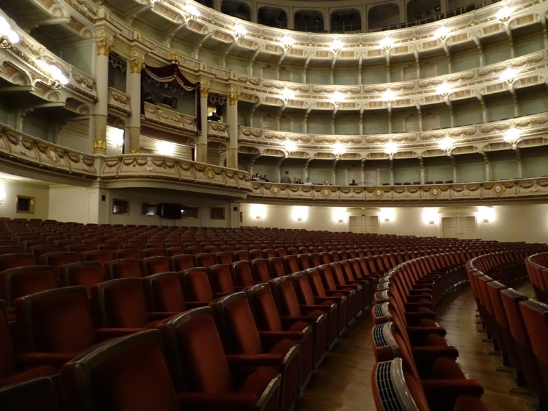 Die jetzige Semperoper ist bis auf einige wenige Steine ganz neu. Und das war ein ziemlicher Kraftakt, denn die Architekten haben erst 1977 nachdem man sich 22 Jahre lang die anklagend aufragende Ruine mitten in der Stadt angeschaut hatte, die alten Pläne von Gottfried Semper ausgegraben und alles ganz genau so machen lassen, wie er es damals gemacht hatte. Das bedeutete, dass die Maler und Gipser Techniken erlernen mussten, die seit Jahrzehnten ausgestorben waren. Sie haben falsche Marmorsäulen mit einer historischen Gipstechnik erschaffen und einen Bau hingestellt, der dem Original zum Verwechseln ähnelt, bis auf ein paar kleine Verbesserungen – so gibt es zum Beispiel die „billigen Plätze“ nicht mehr und auch eine leicht verbesserte Brandschutztechnik. Wenn Ihr nicht die Zeit habt, eine stundenlange Wagner-Aufführung zu besuchen, dann macht doch die Führung durch die Oper mit. Die dauert knapp eine Stunde und ist sehr interessant.