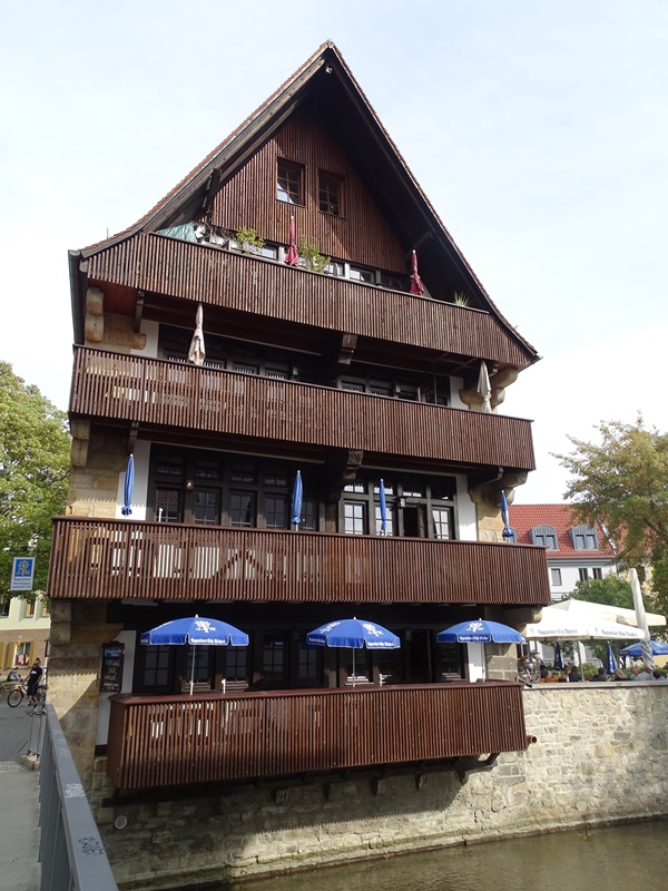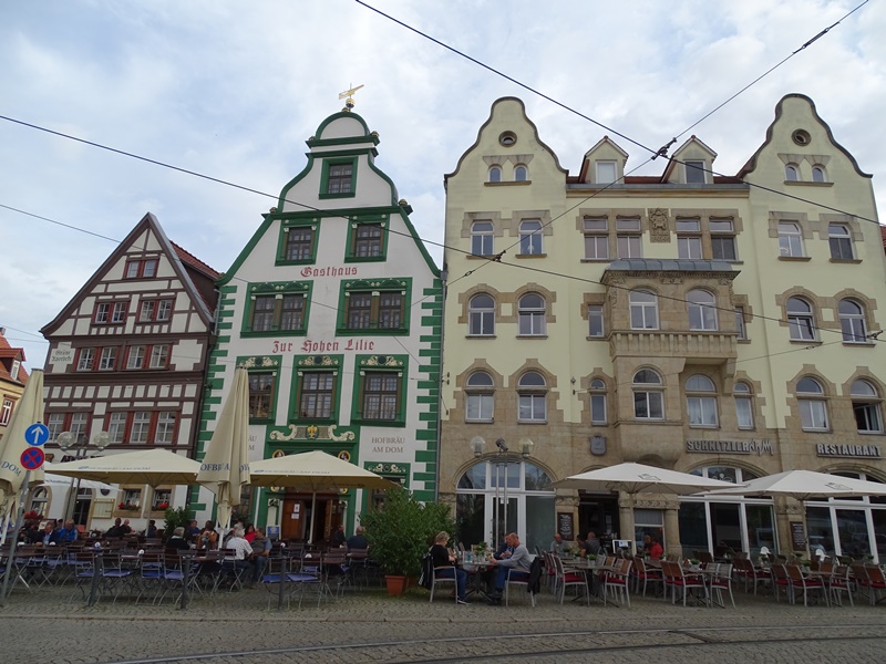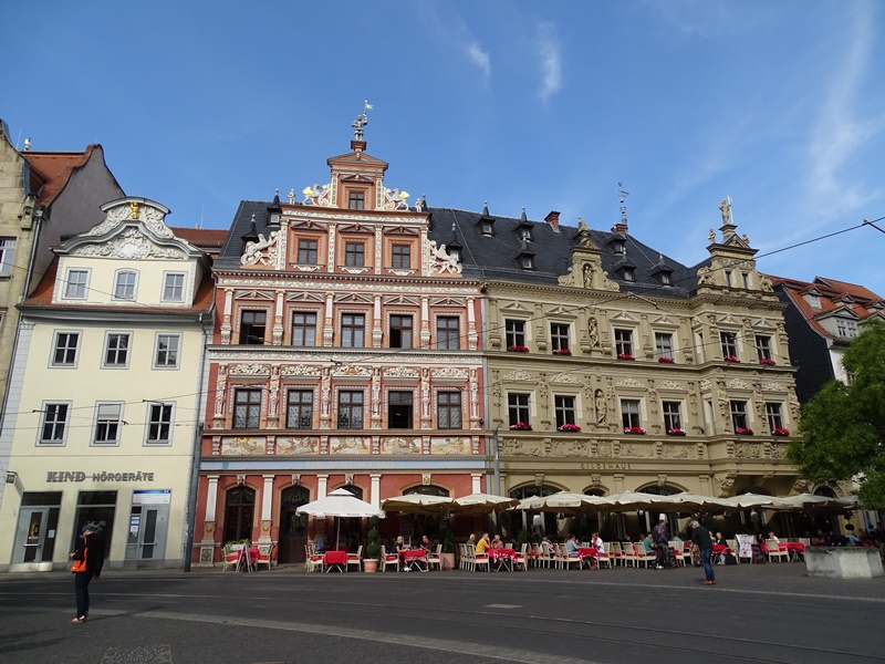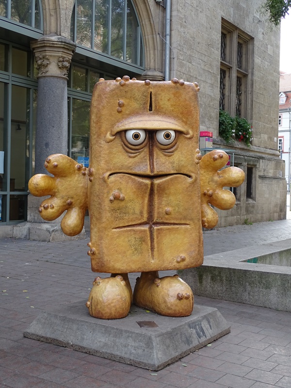 Weil ich so gar nichts über Erfurt wusste, buchte ich eine Stadtführung. Coronabedingt wurde die Gruppe in zwei kleinere Gruppen aufgeteilt. Zwei Stadtführer standen zur Auswahl und ich entschied mich kurzerhand für den einen Herrn mit Kappe. Eine gute Entscheidung wie sich herausstellte, denn der Herr, sein Name war Bötefür, entpuppte sich als jemand, dem sein Job Spaß macht und der es versteht, dem interessierten Besucher heitere Anekdoten und Begebenheiten zur Geschichte Erfurts zu erzählen. Endlich mal ein moderner Stadtführer, der nicht nur Daten und Zahlen herunter leiert und mit Architekturstilen um sich wirft.