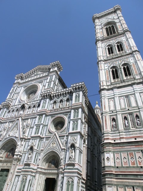 Erst einmal in Florenz angekommen, konnte ich dann alles, was ich mir anschauen wollte, bequem zu Fuß erreichen. Der alte Stadtkern ist recht kompakt und eng. Auffällig ist, dass der Dom einfach mitten in dem Gewirr aus schmalen Gassen steht. Man sieht ihn nie von weitem. Man tritt aus einer winzigen Straße und schaut nach oben und da steht der Dom. Es ist fast unmöglich, das wirklich eindrucksvolle Gebäude in seiner Gesamtheit zu fotografieren.