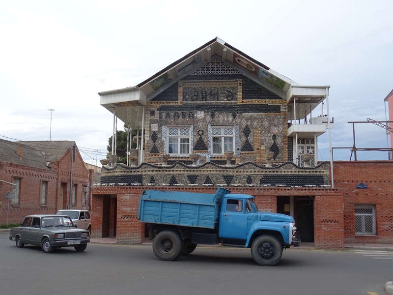 Wer sich auskennt, der findet auch das Flaschenhaus, das als eine der Attraktionen in Ganja angepriesen wird. Es handelt sich um das etwas exzentrische Haus eines älteren Herrn, der die gesamte Fassade mit alten leeren Flaschen verziert hat. Er muss ziemlich gerne getrunken und gebaut haben, denn er soll das gesamte Kunstwerk selbst errichtet haben.