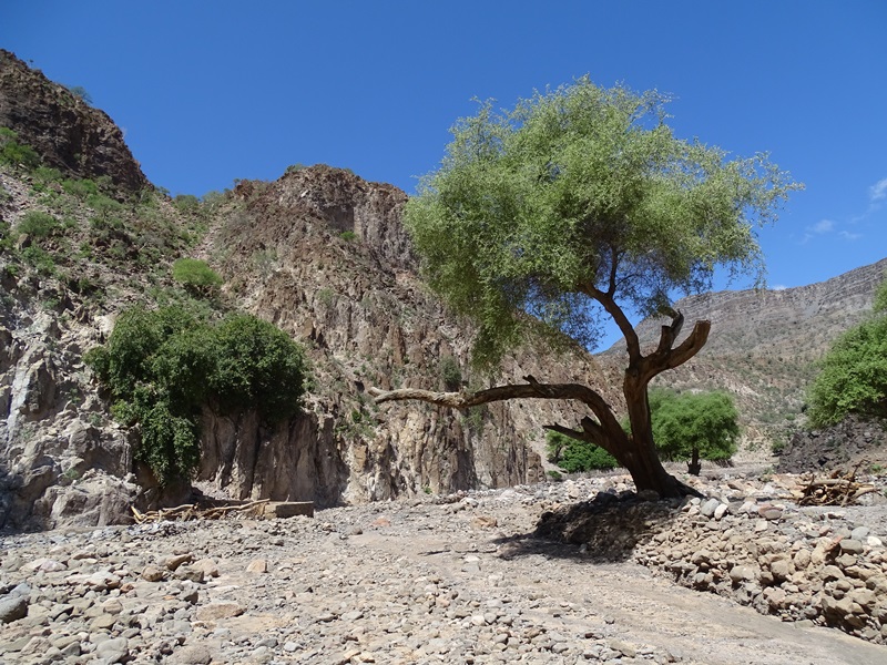 Die Goda-Berge liegen nördlich von Tadjoura in der nördlichen Hälfte von Dschibuti. Nicht weit vom tiefsten Punkt des Kontinents entfernt erheben sich hier Berge von bis zu 1.800 Metern. Von Tadjoura aus führt eine super ausgebaute Straße ein paar Kilometer nach Norden und dann geht es links ab auf eine Schotterpiste, die kaum als solche zu erkennen ist. Das liegt unter anderem daran, dass die Piste mehrmals im Jahr während und nach der Regenzeit von heftigen Fluten fortgespült wird. Wer ein bisschen Pech hat, muss zwei oder drei tage warten, bis die Goda-Berge wieder erreichbar sind.