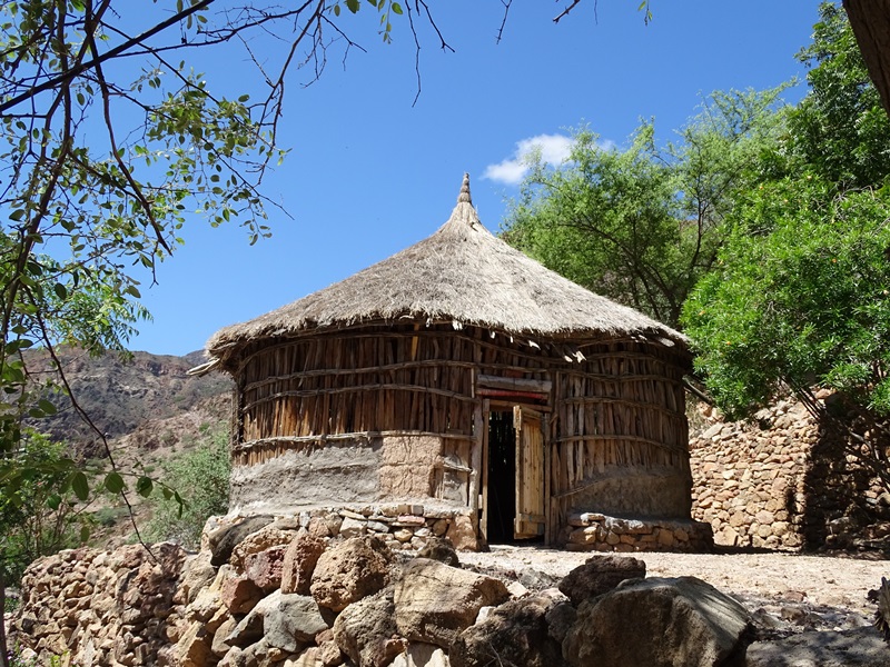 Nach meiner Wanderung durch die kleinen Dörfer mit ihren ärmlichen Lehmhütten, nehme ich unter einer Art Strohpavillon einen sehr starken Tee zu mir, der mich nur wenige Cent kostet. Die Aussicht ist wunderschön und die Ruhe hier oben ist einfach bemerkenswert. Ab und zu blökt eine Ziege oder ein Esel meldet sich zu Wort. Aber Motorengeräusche, Maschinen oder laute Musik sind hier eine Seltenheit. Es ist hier oben etwas kühler und damit angenehmer als in Tadjoura unten am Meer.