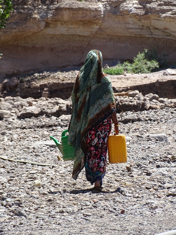 Entlang des Wadis sind Gärten angelegt. Hier wachsen Zitronen-, Orangen- und Mangobäume. Gemüse und Getreide sorgen für die Grundnahrungsmittel. In einem der Gärten leben vier putzige Meerkatzen.