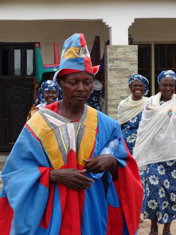 Leider ist der König persönlich verhindert. Er lässt sich durch sein Kabinett vertreten. Die Herren sind allesamt Chiefs aus der Region und tragen elegante Gewänder. Sie nehmen den Gin entgegen und versichern mir, dass ich willkommen und sicher bin. Das freut mich.