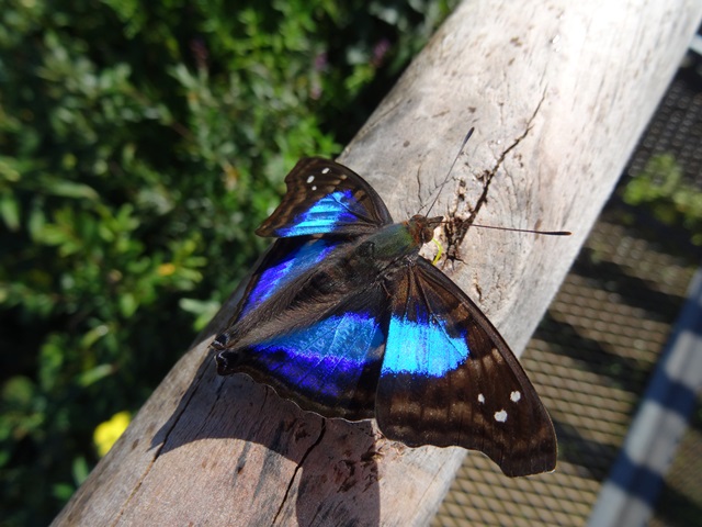Ich fühle mich in mehreren Momenten an die Viktoriafälle erinnert. Es gibt einige Gemeinsamkeiten: Zwei Länder teilen sich die Iguazu Wasserfälle; in der Nähe gibt es ein Dreiländereck; es gibt sooo viel Wasser und tolle Regenbögen. Die Unterschiede sind allerdings auch spürbar: vor allem in der Organisation vor Ort, in der Zahl der Touristen und darin, dass die Brasilianer und Argentinier sehr viel Wert auf die Sicherheit ihrer Besucher legen. Man darf nirgends einfach so auf den Klippen herumtanzen. Trotzdem haben die Iguazu Wasserfälle Ihren ganz eigenen Charme. Auf der argentinischen Seite ist ein langer Steg aus Metall gebaut, an dessen Ende man einen traumhaften Blick direkt hinunter in die Teufelsschlucht. Dutzende von Schmetterlingen in den schönsten Farben sind hier unterwegs. Sie scheinen sich zwischen den Touristen und der aufwirbelnden Gischt wohl zu fühlen. Man wird die Viehcher überhaupt nicht mehr los. Einer leckt mir minutenlang hingebungsvoll die Hand und will sich nicht abschütteln lassen.