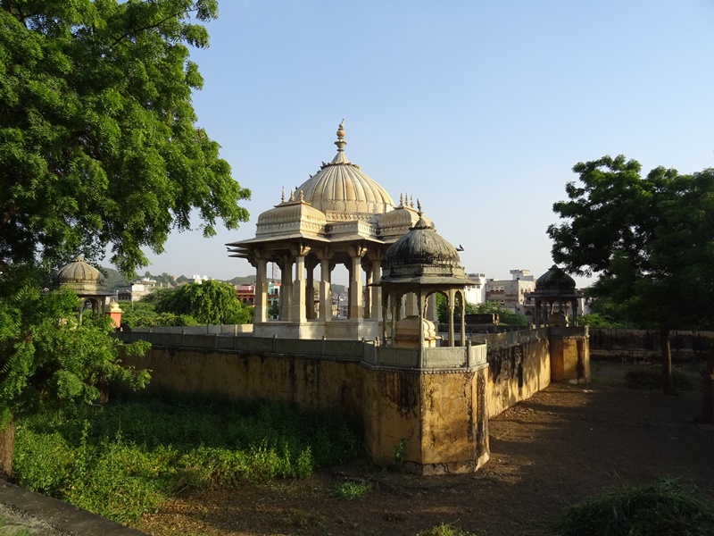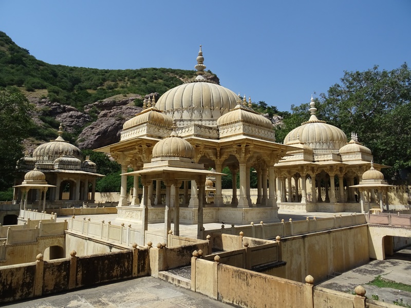 Wunderschön ist zum Beispiel der Jal Mahal, ein Palast mitten in einem künstlichen See. Dann gibt es noch die Verbrennungsstätte der Maharani von Jaipur, die ein Idyll im hektischen Chaos der Stadt darstellt. Nur wenige 100 Meter von der rosa Mauer, die die Innenstadt umgibt, liegen hier einige tolle weiße tempelartige Bauten. Manche aus Marmor. Hier gibt es exotische Blumen und sogar bunte Vögel. So ähnlich, nur noch etwas prunkvoller sind die Verbrennungsstätten für die Maharajas von Jaipur. Gaitor Ki Chhatriyan heißt dieser Platz, ebenfalls nicht weit vom lärmenden Zentrum und in einem ruhigen Park gelegen.