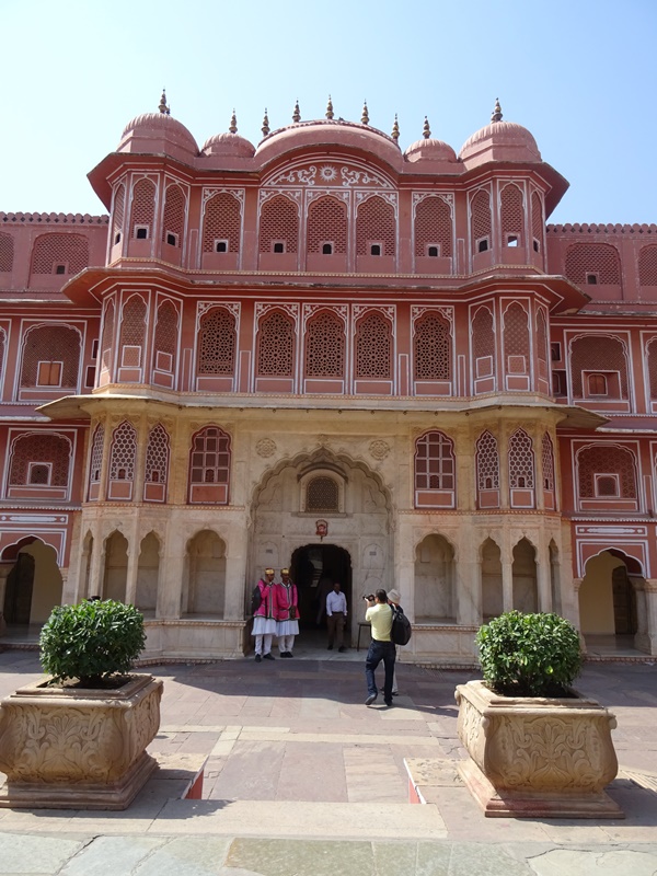 Sehenswert ist allemal der Stadtpalast. Wieder mal ein Palast, den die Maharajas von Jaipur gebaut haben und der auch heute noch – wie viele andere – von den aktuellen Maharajas bewohnt wird. Der Enkel des verstorbenen Maharajas trägt heute den Titel, weil es dem alten Herren nicht vergönnt war, Söhne zu haben. Sich mehrere verschiedene Ehefrauen anzulachen war ihm zu mühsam und daher adoptierte er der Einfachheit halber den Sohn seiner Tochter. Und dieser macht das Beste aus dem Familienvermögen. Der Stadtpalast bietet einige interessante Schätzen unter anderem ein Gästehaus und die größten silbernen Krüge, die jemals hergestellt wurden. Sie enthielten aber keinen Wein, sondern heiliges Gangeswasser.