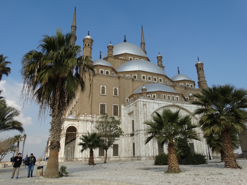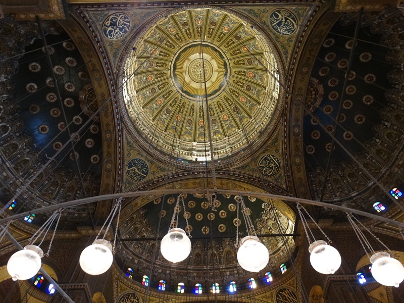 Im Innern der Alabastermoschee ist Mohammes Ali begraben. Ziemlich eindrucksvolles Grab. Auch der Rest der Innenausstattung ist prachtvoll. Ich fühle mich vom Stil und von der Dekoration her stark an die Hagia Sophia in Istanbul erinnert, aber auch an ein paar andere riesige Moscheen, die ich bisher gesehen habe. Erfreulicherweise muss ich nicht mal ein Kopftuch tragen. Nur Schuhe aus. Das ist Pflicht. Aber das stört mich nicht, weil es alle machen müssen, nicht nur die Frauen.