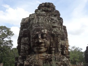 Ein kleiner Fehler hat sich in meine Reiseplanung eingeschlichen: Gleich am ersten Tag sehe ich den berühmtesten und größten Tempel Angkor Wat und den etwas kleineren aber auch bekannten Tempel Bayon. Damit kann es ab dem 2. Tag eigentlich kaum noch schöner werden, denn diese beiden Tempelanlagen sind so beeindruckend, dass ich am liebsten stundenlang einfach nur mit offenem Mund staunen möchte. Natürlich erinnere ich mich von meinem letzten Besuch an die mächtigen Türme mit den Gesichtern und an die Wassergräben sowie die schnalen steilen Stufen, aber trotzdem haut mich der Anblick wieder um.