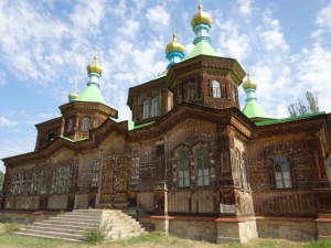 Nur wenige Kilometer vom Issyk Kul See entfernt, liegt die Stadt Karakol. Außer einer orthodoxen Kirche und einer dunganischen Moschee gibt es kaum ein nennenswertes Bauwerk. Beide sind so um die 100 Jahre alt. Der Rest der Stadt ist wenig spektakulär. Aber die umliegende Landschaft ist wunderschön. Wir besuchen den Altyn Araschan Canyon, kämpfen uns mit einem Allradfahrzeug eine sehr steinige Straße hinauf und bewundern eine zauberhafte alpine Landschaft. Auf etwa 2500 Metern Höhe gibt es hier mächtige Nadelbäume, bunte Blümchen, wunderschöne Esel und einen Gebirgsbach, der es wirklich eilig hat ins Tal zu kommen.