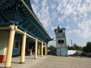 Nach vier Tagen ohne Dusche nehme ich bei einer Gastfamilie in Kysil Oi eine der besten Duschen meines Lebens. In dem kleinen Ort gibt es zwar nicht viel zu sehen, aber ein Spaziergang ist trotzdem ein Erlebnis. Ich verfolge eine junge Eselfamilie, um Fotos vom Babyesel zu machen. Schaue einer Fünfjährigen dabei zu, wie sie Wasser in Eimern vom Brunnen nach Hause schleppt und fotografiere die Moschee, die wie fast alle kirgisischen Moscheen mit wenig attraktiven Blechkuppeln verziert ist.