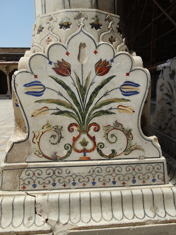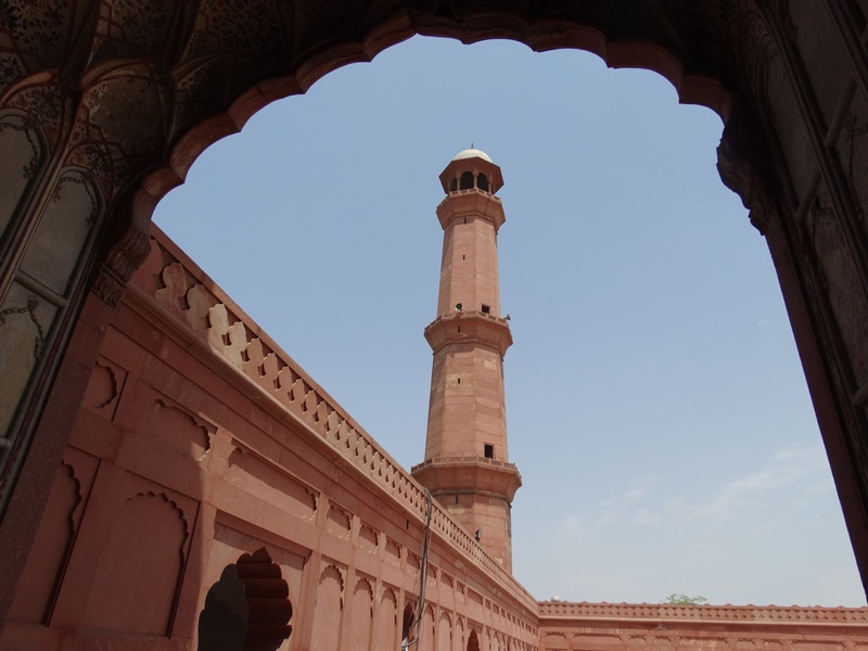 Ich hatte ja auch schon das Vergnügen, mir zum Beispiel die riesige Moschee in Old Delhi anzusehen, die Jama Masjid. Hier in Lahore steht eine große Moschee. Es ist die Badshahi-Moschee, die der in Delhi sehr ähnelt. Es ist eine wunderschöne Moschee mit drei riesigen Kuppeln und vier Minaretten, die wie beim Taj Mahal einen Hauch nach außen geneigt sind. Die Anlage mit dem weiten freien Platz aus rotem Stein ist eindeutig im Stil der Mogulkaiser gehalten. Sie steht mitten in Lahore und wird abends effektvoll beleuchtet.