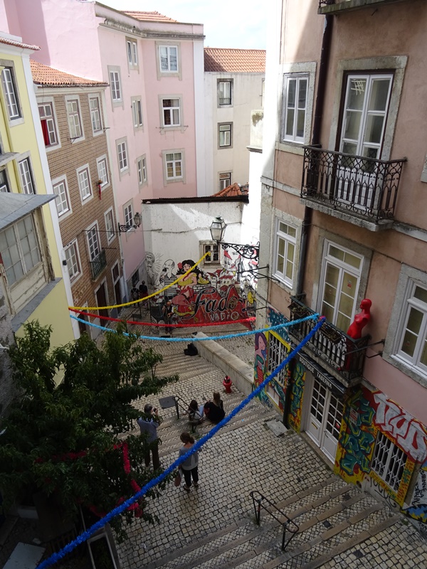 Ich bin mal wieder überrascht, wie hässlich manche Stadtteile von Lissabon sind und wie wunderschön und fotogen dafür Alfama und die Umgebung der Festung sind. Von der Festung Sao Jorge aus ist der Blick auf die Stadt auch bei wolkigem Himmel einfach hübsch. Nach einem typisch portugiesischen Mittagessen, das natürlich Bacalau beinhaltet, fängt es dann so richtig an zu schütten. Daher habe ich einige Stunden dieses wasserspendenden Samstages im Hotel verbracht. Schande über mich.
