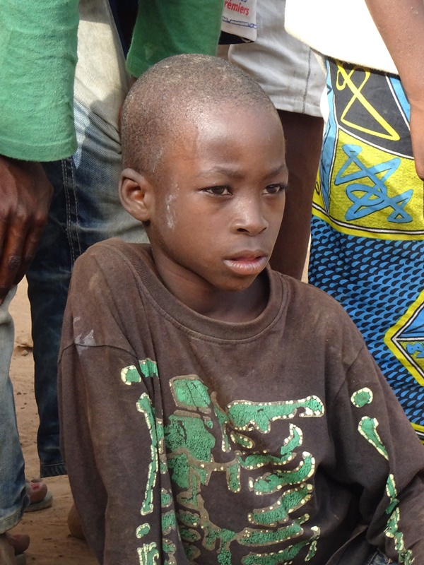 Ich war angemeldet. Wenn sich eine Touristengruppe anmeldet, dann führen die Menschen in Lopouafla ihren bekannten Tanz auf, der genau genommen aus drei verschiedenen Tänzen besteht und für die gesamte Region typisch ist. Dass es jedoch nicht allzu oft passiert, dass hier Touristen auftauchen und die Tänze aufgeführt werden, merke ich daran, dass sich Dutzende von Dorfbewohnern und wahrscheinlich alle Kinder des Dorfes auf dem kleinen Platz einfinden, um das Spektakel mitzuerleben.