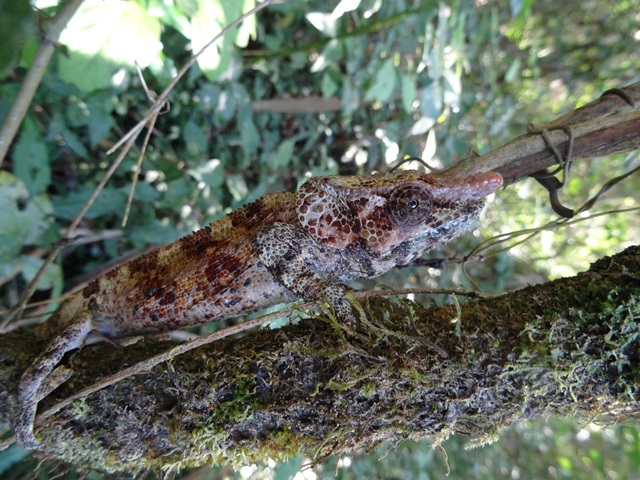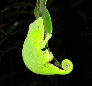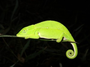 Schon der Vorabend war reichlich kühl gewesen, aber nachdem ich mich in der Küche am Herd ein wenig aufgewärmt hatte, war ich bereit für die Nachtwanderung, bei der mir der Haus- bzw Waldherr die ersten Chamäleons meiner Reise zeigen wollte. Tatsächlich fand der etwas mürrische aber auf seine Weise dennoch freundliche Madagasse nur mit einer Taschenlampe bewaffnet zahlreiche Chamäleons, die für meine Augen vollkommen unsichtbar mit dem Blattwerk verschmolzen waren. Unglaublich!