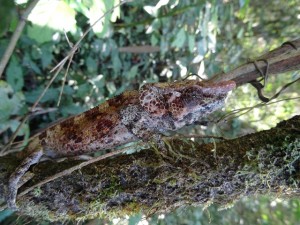 Zu guter Letzt findet der kleine Mann auch noch bei Tageslicht ein Chamäleon, das wirklich sein Bestes gegeben hat, sich zu tarnen. Diese Tierchen sind einfach unglaublich. Zudem sind sie dankbare Fotomotive, denn im madagassischen Winter verfallen sie in eine Art Starre oder Winterschlaf und bewegen sich kaum, auch nicht, wenn man sie mit Blitzlicht fotografiert. Ich möchte mich nochmal in aller Form für die Ruhestörung entschuldigen!