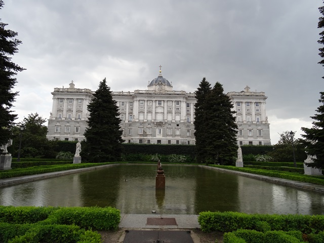 Im Palacio Real muss ich Eintritt bezahlen. Der Eintritt ist an Wochentagen am Nachmittag frei für Bürger der EU und Südamerikas. Eine eigenartige Regelung. Dass die Bewohner der südamerikanischen Staaten freien Eintritt haben, versteht sich eigentlich von selbst, denn der Palast wurde schließlich vollständig mit dem Geld erbaut, das den Südamerikanern seinerzeit von den Spaniern gestohlen wurde. Im Innern kann man ziemlichen Prunk sehen, ein wenig wie in Versailles oder im Puschkin Palast. Die Besucher haben Zugang zu etwa 30 der insgesamt 3400 Räumlichkeiten, aber nach dieser kleinen Auswahl hat man schon einen ausreichenden Eindruck, wieviel Gold und Silber die Spanier in Südamerika erbeutet haben.