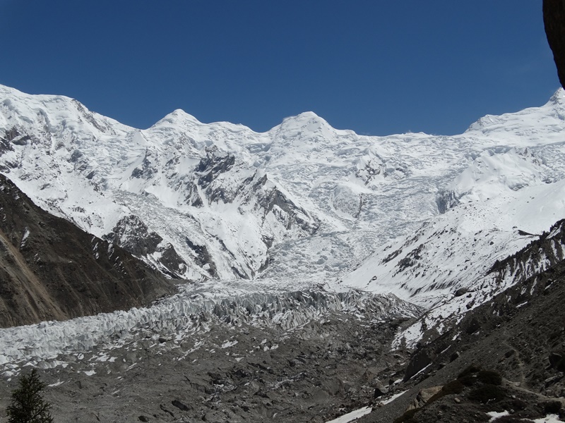Am nächsten Tag steht die Wanderung in Richtung Basislager des Nanga Parbat an. Jetzt im April ist das Basislager noch von dickem Schnee bedeckt, weshalb ich mich für die Wanderung bis zum Eagle Nest Viewpoint entscheide. Ich brauche etwa drei Stunden mit vielen Pausen, um den großartigen Aussichtspunkt zu erreichen. Die Strecke ist nicht schwer und überwindet etwa 35 Höhenmeter. Sie führt entlang am Rajkot Gletscher und durch wunderschöne Kiefernwälder. Das Panorama am Endpunkt ist einfach atemberaubend.