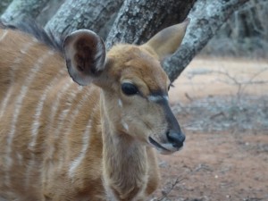 Glücklich und mit vielen Fotos im Kasten sitze ich am Abend vor dem Zelt und lasse mich bekochen. Es gibt gefüllte Squash-Kürbisse und gegrillte Champignons. Ein paar Nyala-Antilopen wagen sich bis einen Meter an die Feuerstelle heran und sehen, ob sie von dem leckeren Mahl etwas abbekommen können. Über uns in den Wipfeln der Akazien klettert ein Buschbaby herum. Es schreit, um seinem Name alle Ehre zu machen, zieht dann aber zügig von Dannen, als die Blitzlichter der Kameras sich auf es richten.