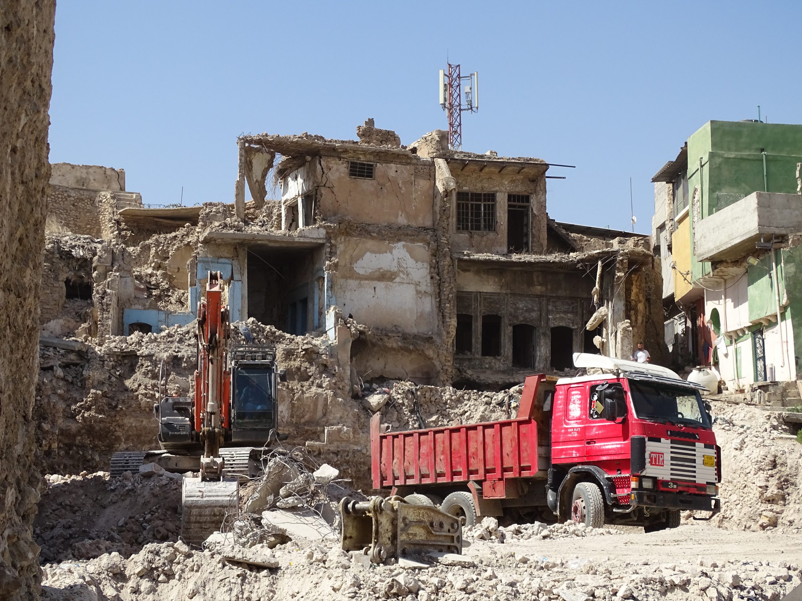 Eine Stadttour durch Mossul ist jedoch nicht komplett, ohne sich das vollständige Ausmaß der Zerstörung anzusehen. Es gibt eine sehr große Zone, in der die Aufräumarbeiten noch so gut wie nicht vorangeschritten sind. Zwar wurden die Straßen soweit geräumt, dass man hindurchgehen kann, viele Gebäude wurden von Minen und Blindgängern befreit. Leichen wurden geborgen. Nach fünf Jahren riecht man die Verwesung nicht mehr. Aber mit Sicherheit liegen unter den Trümmern noch zahlreiche Menschen begraben.
