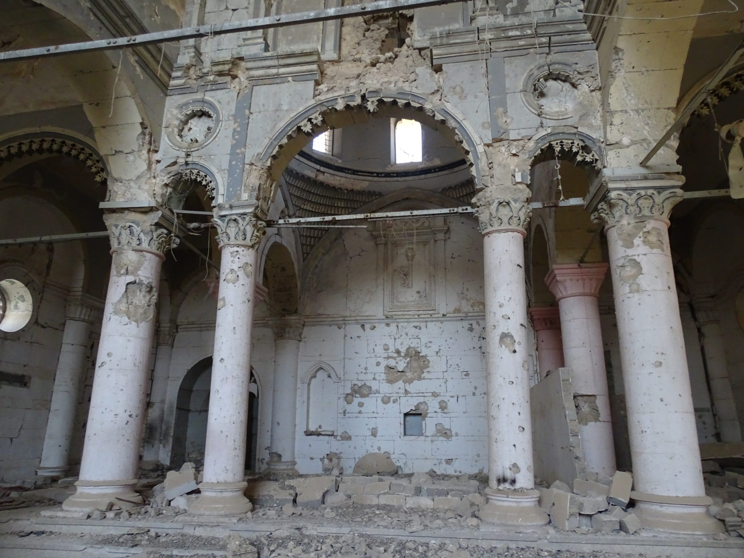Die selbsternannten Gotteskrieger haben die Stadt so stark zerstört wie es fünf Erdbeben nicht vermocht hätten. Daneben sind die ersten Gebäude wieder aufgebaut, wieder hergerichtet. Man erkennt den Unterschied zwischen alten und neuen Bauwerken sofort daran, dass die neuen keine Einschusslöcher haben. Keines der Bauwerke in Mossul ist ohne Beschädigungen davongekommen.