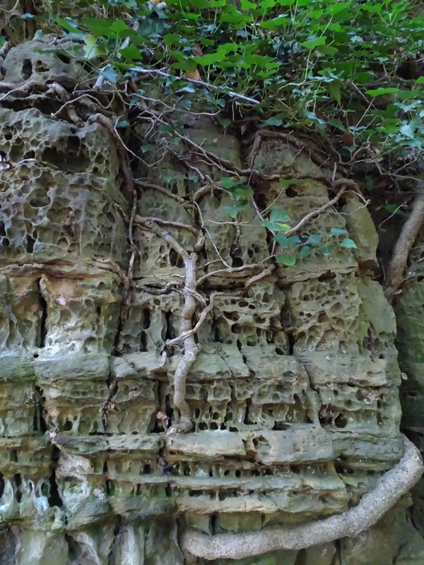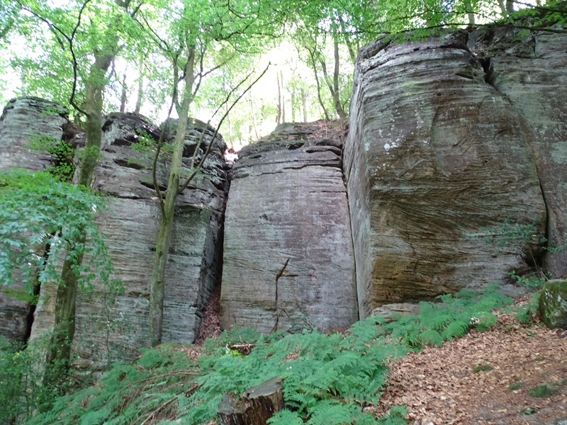 Es gibt auf den verschiedenen Wanderwegen viele enge Passagen, wo man sich zwischen mächtigen Felsen hindurch schlängeln muss. Diese Felsspalten und Höhlen haben Namen wie Räuberhöhle. Viele Sagen und Legenden umgeben das Müllerthal. In einer der Schluchten liegt ein uralter Schatz, der von einem Grafen beschützt wird, der seine Seele dem Teufel verkauft und sich daraufhin in einen Hund mit glühenden Augen verwandelt hat. Wer einen geweihten Rosenkranz in die Schlucht wirft, wird den Graf befreien und den Schatz bekommen. Ich wüsste nur zu gerne, wie viele Rosenkränke da unten liegen.