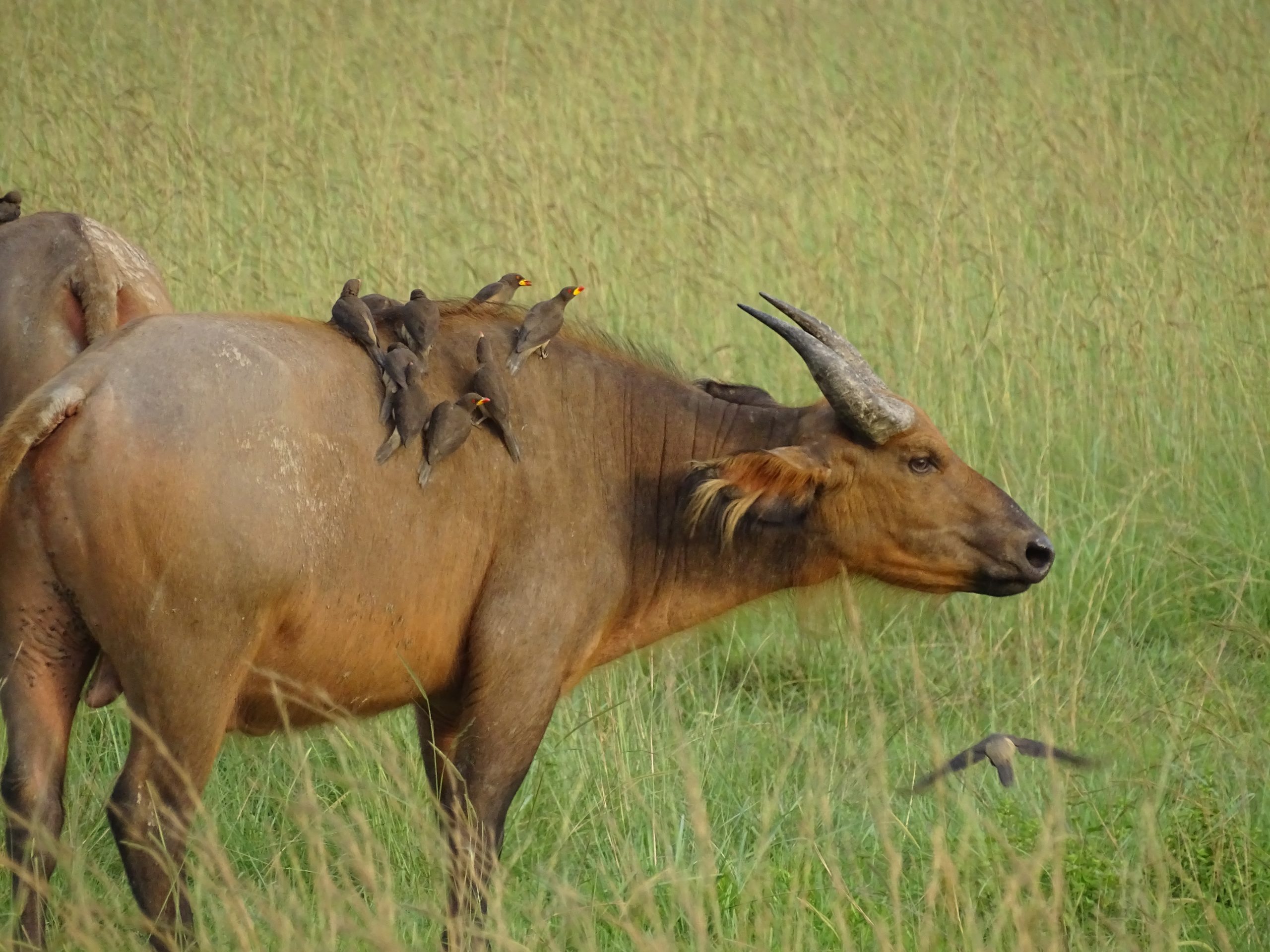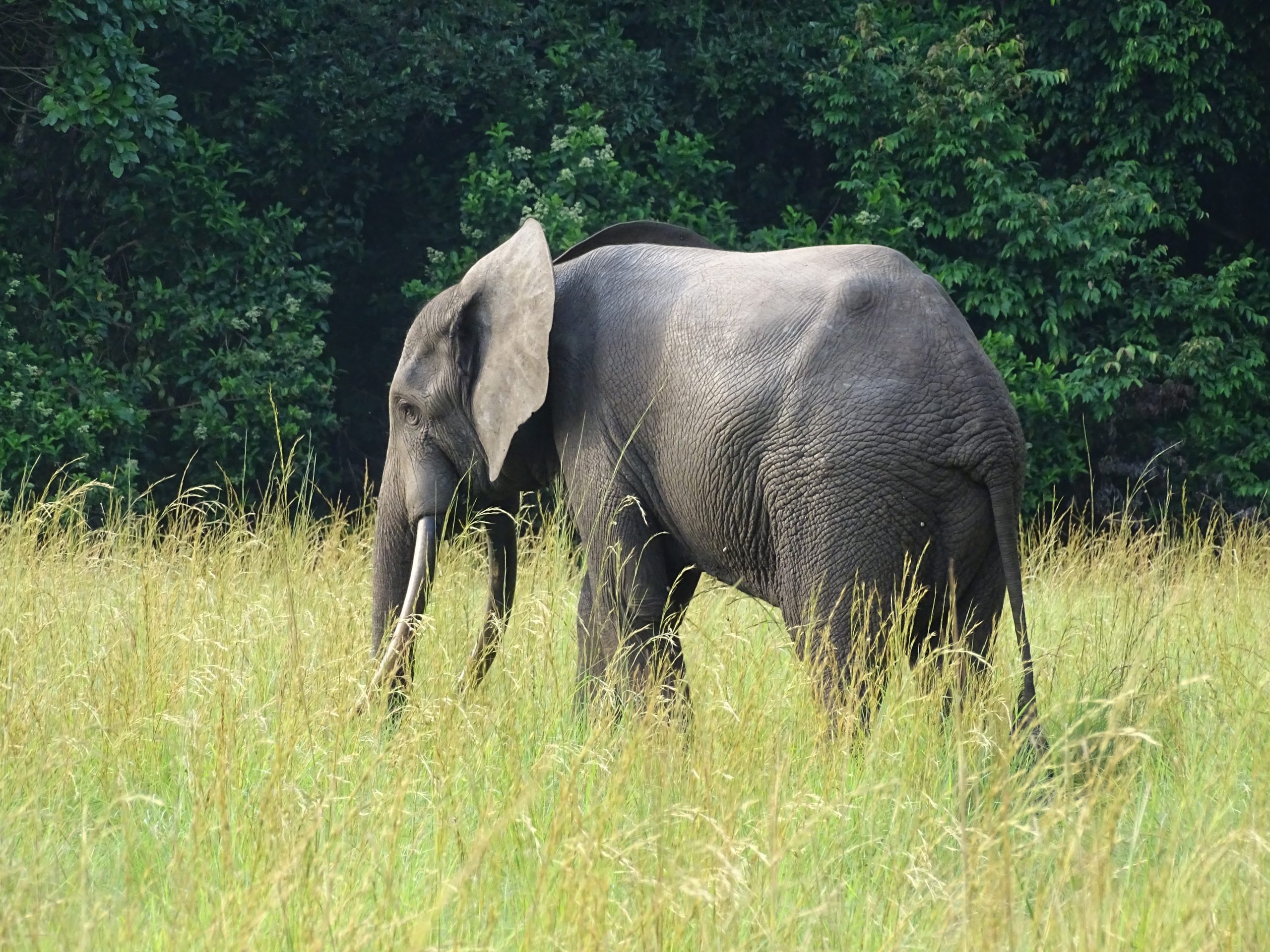 Bei der Nachmittagsfahrt hatte ich tatsächlich Glück und habe sowohl Waldelefanten als auch zwei größere Herden Waldbüffel gesehen. Außerdem zwei Marabus, mehrere Geier und einige Affen. Die Affen waren jedoch so weit oben in den Bäumen, dass ich mit bloßem Auge nicht ausmachen konnte, welche Affenarten es waren.