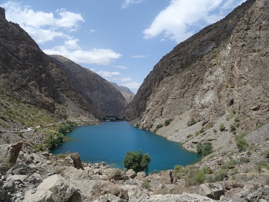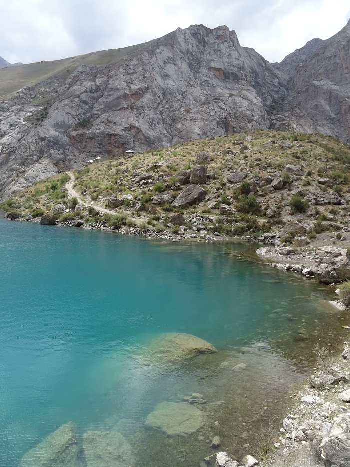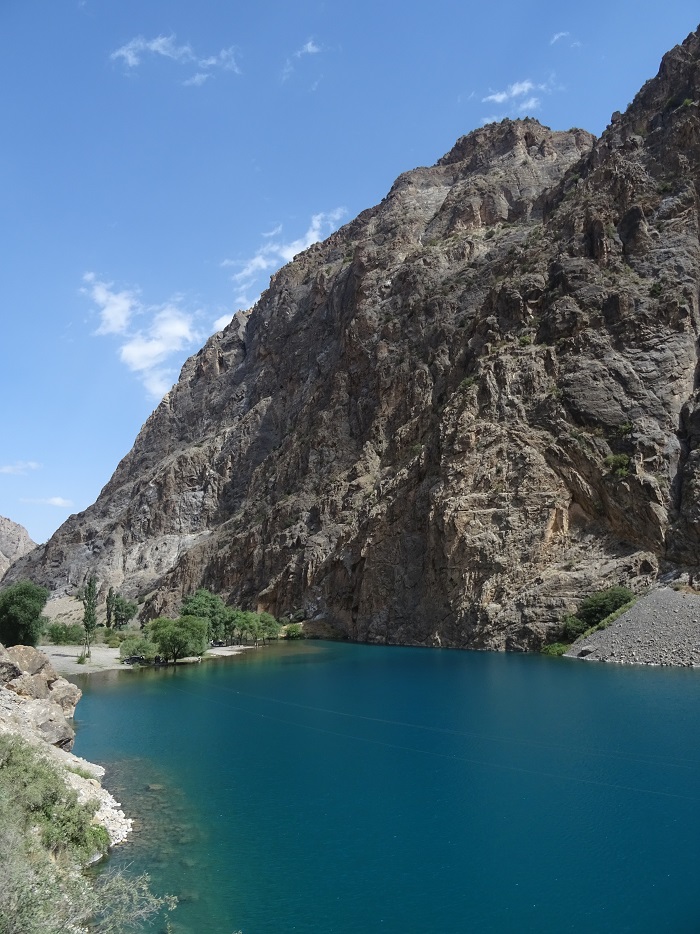 Wunderschön war der Ausflug zu den sieben Seen, die etwa zweieinhalb Stunden, wenn auch nur etwa 60 Kilometer von Pandschakent entfernt liegen. Es sind tatsächlich sieben See, die alle vom Shing Fluss gespeist werden, einer nach dem anderen. Sie sind groß, klein, grün, blau, türkis und erstaunlich sauber. Die Fahrt dahin ist sehr holprig. Am besten geht man ab einem gewissen Punkt zu Fuß weiter. Die Landschaft der Fan-Berge ist traumhaft und hier bekommt man ein wenig von dem Bergpanorama, das man sich bei Tadschikistan eigentlich vorstellt.