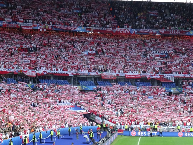 Die Atmosphäre im Stadion war überwältigend. Mehr als 81.000 Verrückte hatten sich im Stade de France, dem größten Stadion Frankreichs, zusammengefunden. Sie waren mehr oder weniger nach polnischen und deutschen Fans getrennt. Die Polen waren jedoch eindeutig in der Überzahl und sie konnten meiner Meinung nach auch viel besser – oder zumindest deutlich lauter – singen, als die Deutschen.