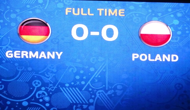 Trotzdem war es ein Erlebnis, so ein Spiel einmal live in einem so großen Stadion zu erleben, die Herren Boateng, Müller und Özil auf dem Platz herumrennen zu sehen und den polnischen Fans beim Singen zuzuhören. Unsere Sitznachbarn bemalten unsere Gesichter mit Schminke in Deutschlandfarben und boten uns etwas von ihrem ins Stadion geschmuggelten Wodka mit Cola an. Mit der Schminke im Gesicht konnte ich in Sachen Patriotismus dann fast schon mit meinem Begleiter mithalten, der mir in dieser Angelegenheit einiges voraus hat. Mir sind Nationalitäten und eigentlich auch Fußball ja komplett egal. So eine EM soll in meinen Augen vorrangig Spaß machen!