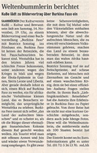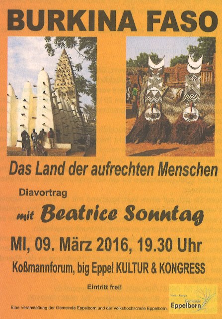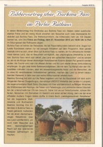 Ankündigung des Bildervortrages über Burkina Faso in Eppelborn (Amtsblatt):