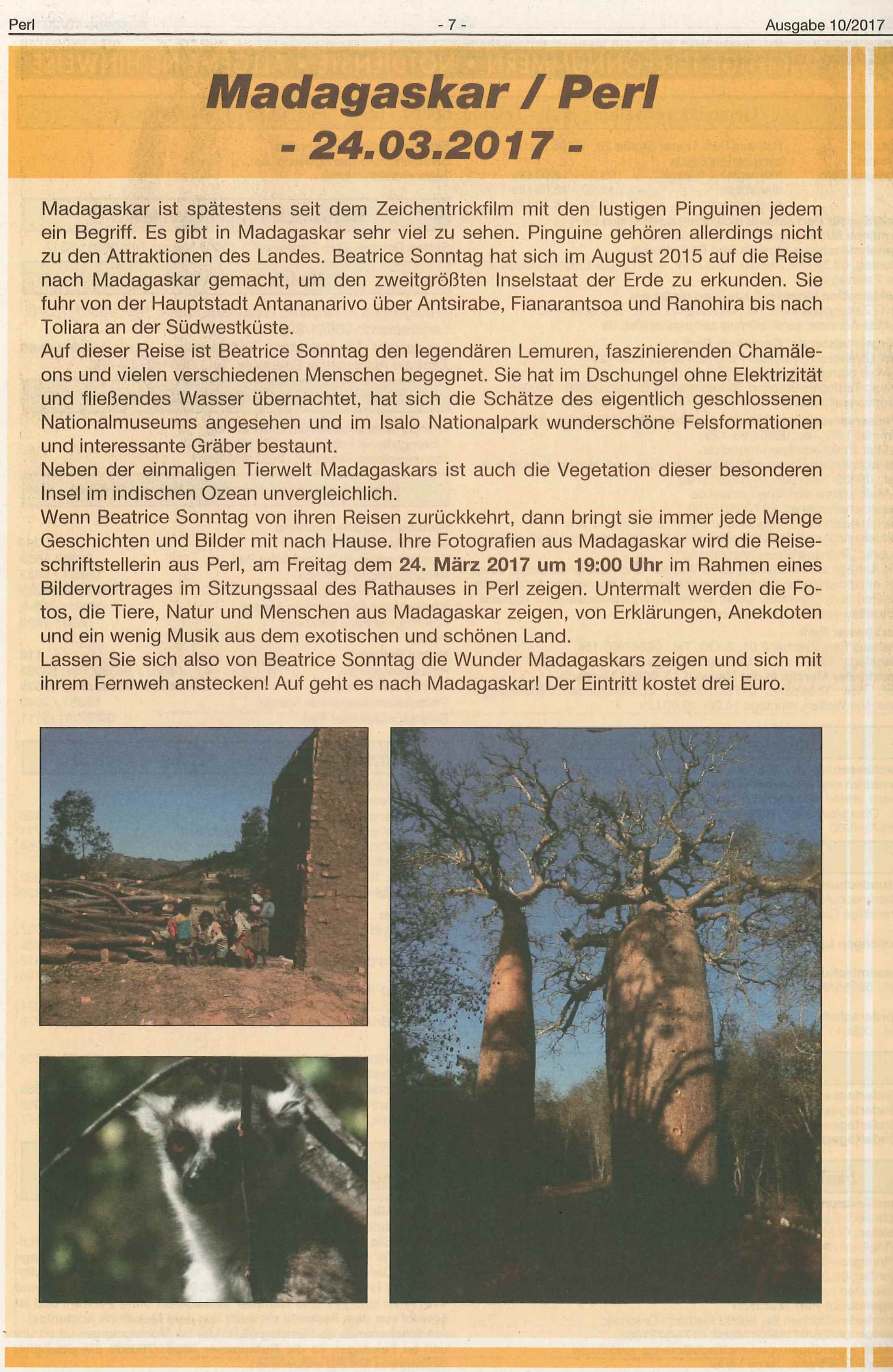 Ankündigung Madagaskar Vortrag in Perl März 2017: