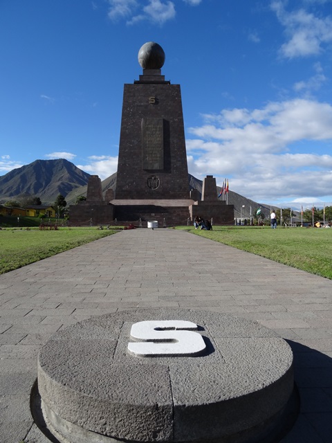 In Quito gibt es aber nicht nur eine wunderschöne Altstadt mit tausenden von alten Gebäuden, sondern auch die Mitte der Welt: La mitad del mundo. Etwas außerhalb des eigentlichen Zentrums befindet sich ein Denkmal, das genau auf dem Äquator errichtet wurde, also auf dem Äquator, der 1736 von einigen französischen Wissenschaftlern vermessen und festgelegt wurde. Der heutige GPS-genaue Äquator befindet sich etwa 240 Meter weiter nördlich. Die Franzosen lagen also nicht wirklich falsch. Im Grunde kann als Äquator eine „Linie“ von etwa sechs Kilometern Breite bezeichnet werden. Aber hier in Quito gibt es eine sehr fotogene gelbe Linie, auf der alle Touristen ein obligatorisches Foto machen müssen.